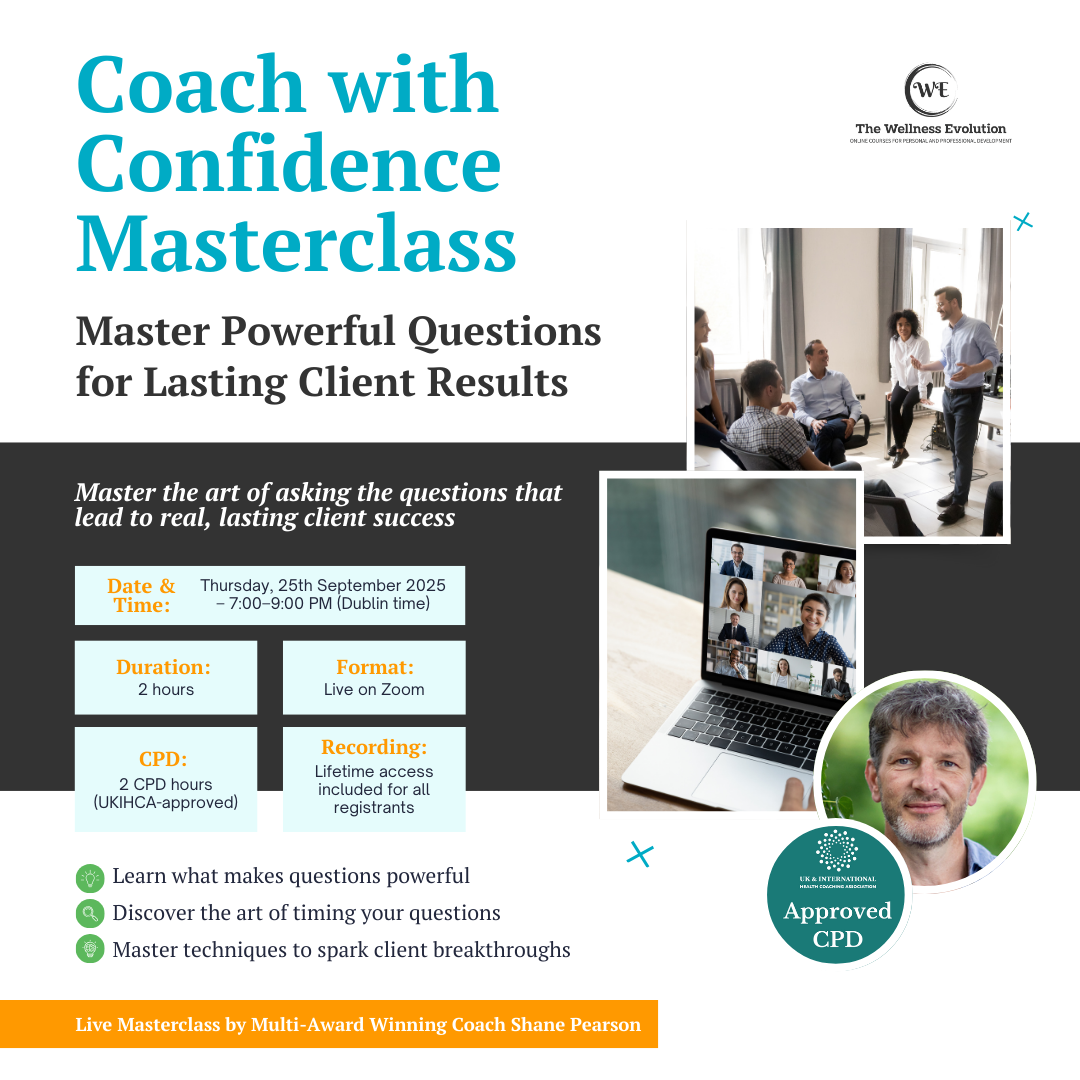 In this live masterclass, you’ll learn to listen for what matters, ask with precision, and land the question so clients generate their own insight—and commit to lasting action. You’ll discover what actually makes a question powerful (and what makes it fall flat), how to spot the exact moment to ask, and how to use silence and strategic follow-ups to deepen insight, evoke transformation and catalyse commitment.
